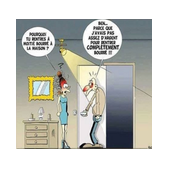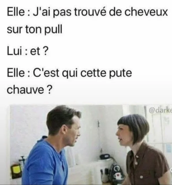 Femme : - " Voyons Jean-Michel, ça fait des semaines que tu le sais et que tu ne l'as pas fais réparer. "