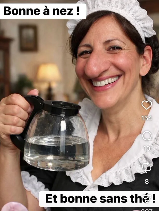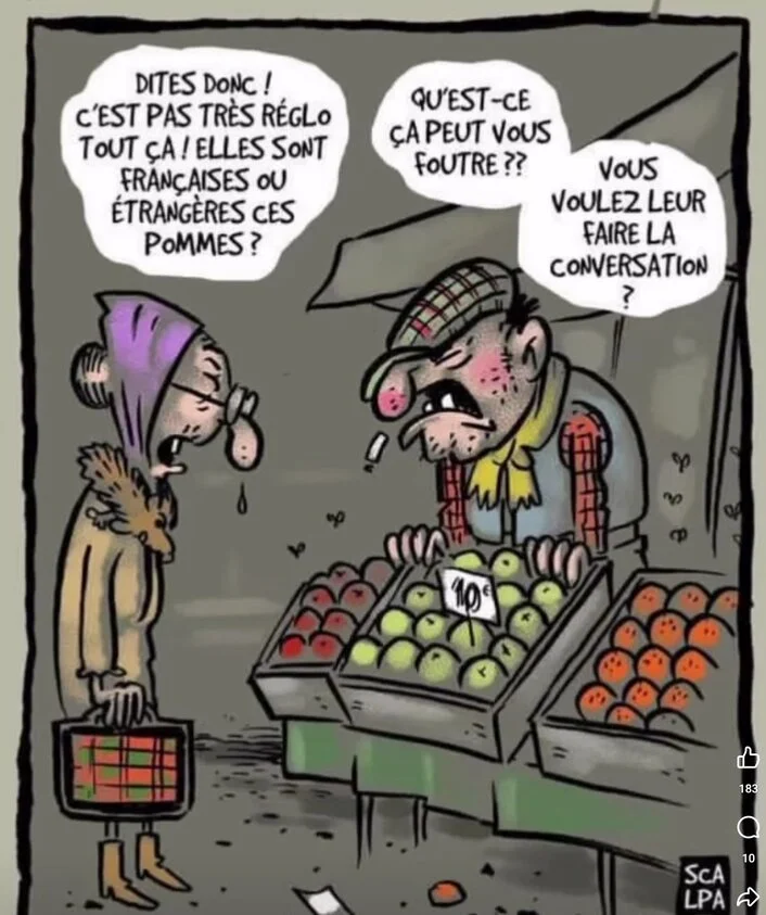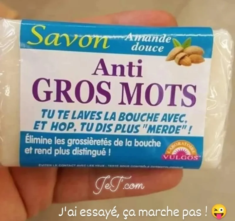 - Vous voyez le monsieur qui est à la caisse avec une moustache ? Eh bien, c'est ma femme ! Ca lui est arrivé en débouchant un flacon de ce produit avec les dents !