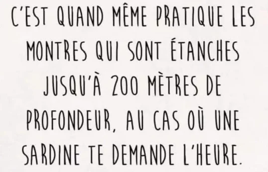 Homme : - " Mais je la portais, m'sieur l'agent. Je l'ai détachée après que vous m'ayez arrêté, pendant que vous marchiez vers l'auto. "