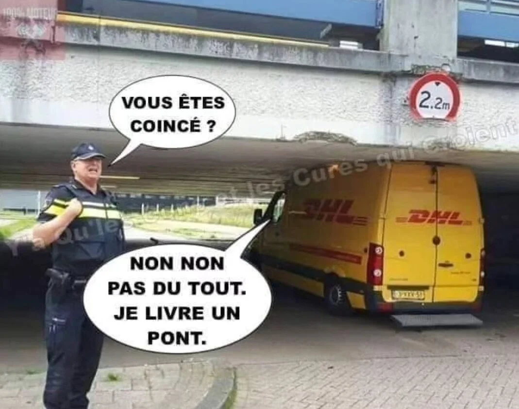 Agent : - " Je vais aussi vous donner une amende pour votre lampe arrière qui est brûlée."