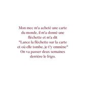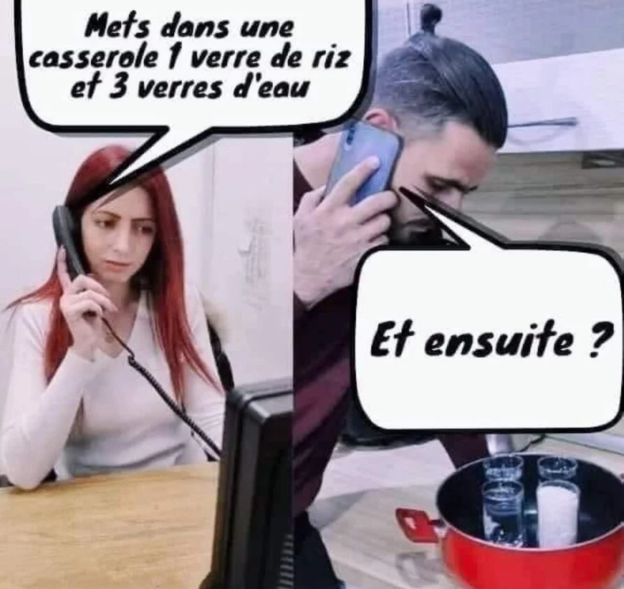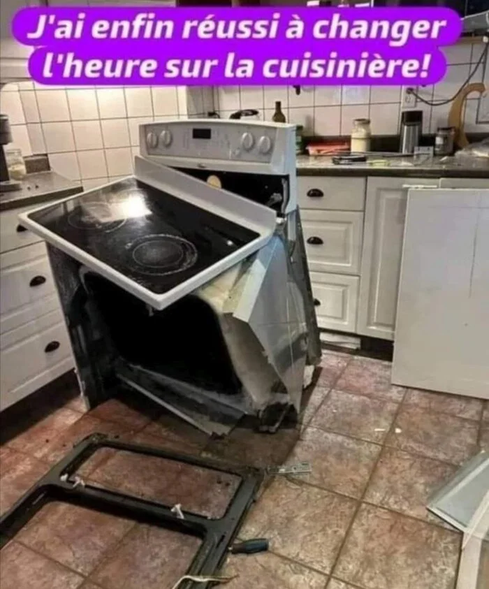 Femme : - " Voyons Jean-Michel, ça fait des semaines que tu le sais et que tu ne l'as pas fais réparer. "