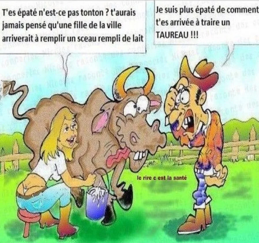 Elles y rentrent et voient leur amie à genoux sous une vache en train de sucer un pis.