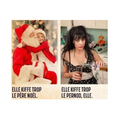 Tout à coup, elle donne un petit coup de pied discret à son mari :