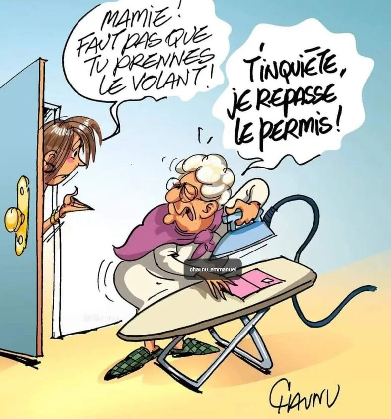 Femme : - " Voyons Jean-Michel , tu ne mets jamais ta ceinture ! "