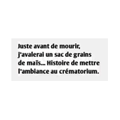 Homme : - " Mais je la portais, m'sieur l'agent. Je l'ai détachée après que vous m'ayez arrêté, pendant que vous marchiez vers l'auto. "