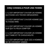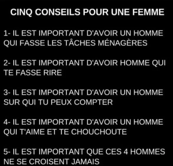 - Ha! Ha! Ha! Moi, dit la deuxième, il y a quinze jours, j'ai trouvé des préservatifs dans son tiroir, et je les ai tous percés avec une épingle...