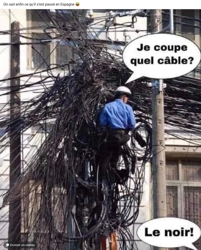 - Ben toi, t'es vraiment brune alors ! Regarde-moi ça, il y a un noeud dans ton câble d'alimentation électrique !