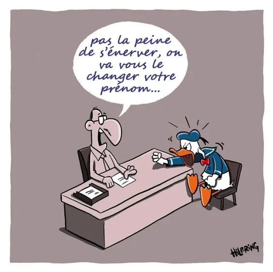L'agent se penche et demande à la femme : " Est-ce que votre mari vous parle toujours comme ça ? "