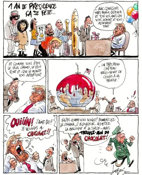 Le roi des belges, excédé par les blagues françaises sur ses sujets, va voir le président français pour lui demander une faveur: